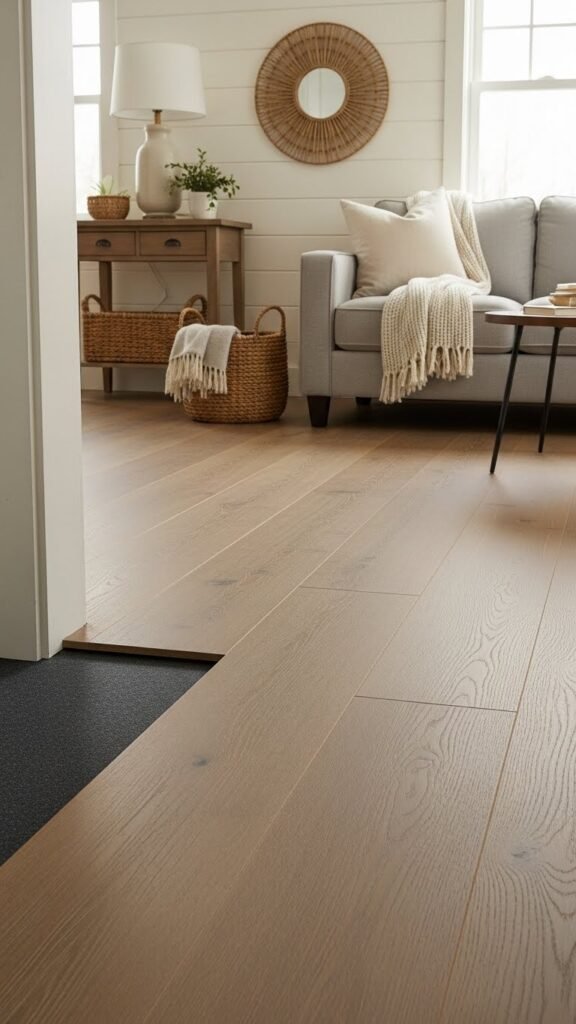 You’ll relish wood’s grain and scent; plan an acclimation gap, pick an Underlayment choice that buffers sound and moisture, and choose wide, matte boards for a liberated, modern cabin vibe.