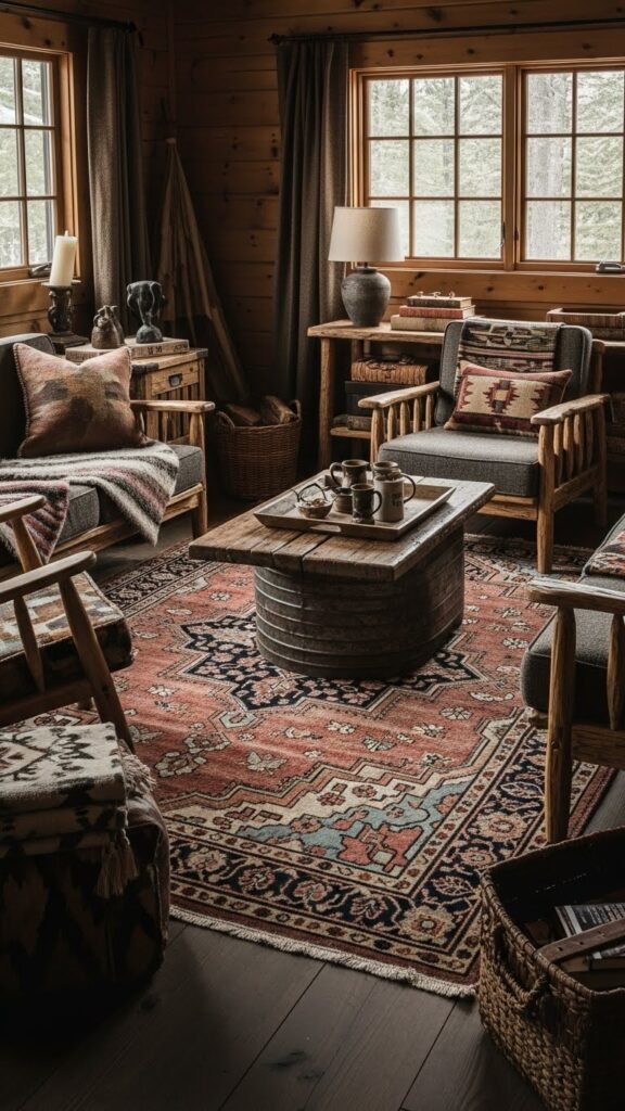 A single well-chosen antique or Persian-style rug can anchor your cabin’s layout, adding depth, history, and a patina that modern textiles rarely match.