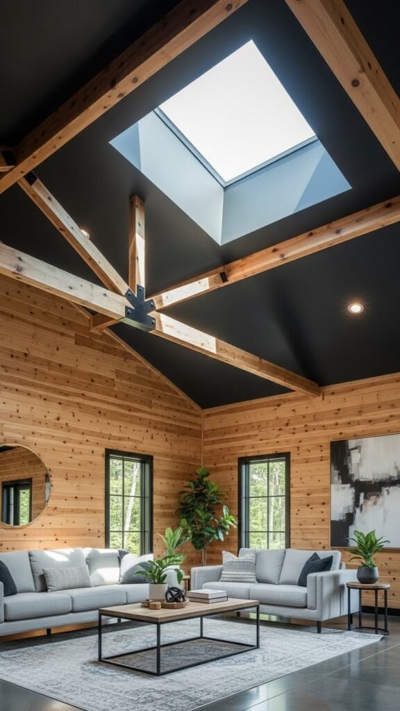 You’ll choose matte white or deep charcoal, highlight an accent beam, and try skylight painting to reflect light.