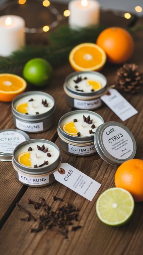 You’ll combine citrus zesty oils, clove warming spice, soy wax, and simple tins for portable gifts. Trim wicks, label with minimalist tags, and include care notes. They feel modern, freeing, and instantly uplifting for recipients.