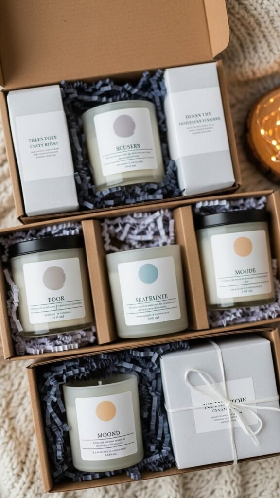 Start by choosing three to five small hand-poured soy candles in complementary scents and colors so your gift feels curated rather than thrown-together. You’ll group fragrances for intentional scent layering, add simple label customization for names or moods, then package each in recyclable boxes with tissue.