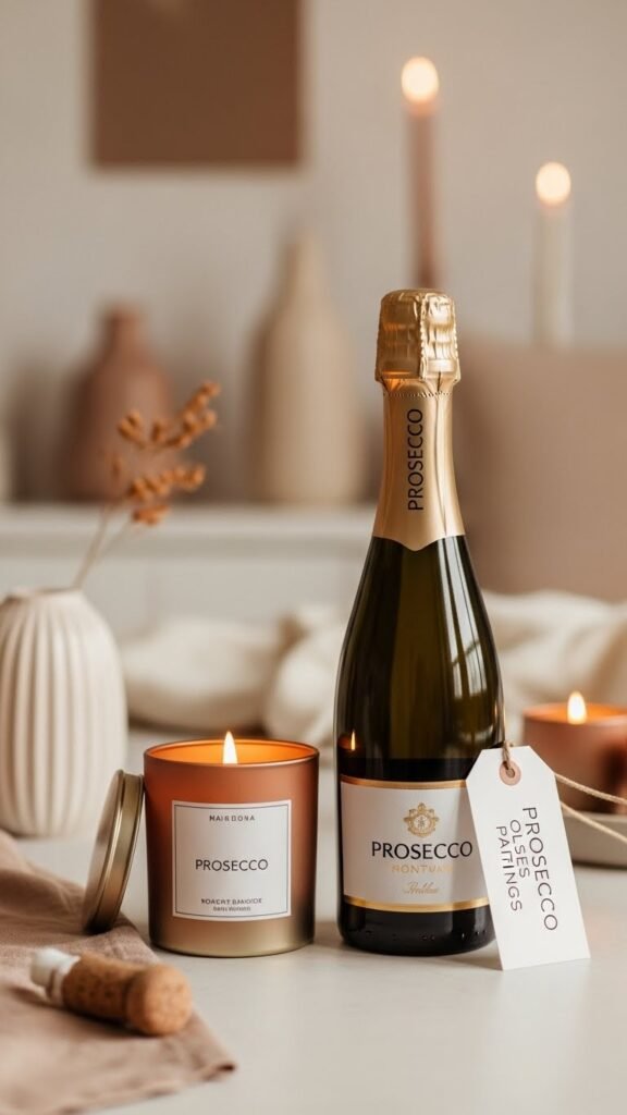 Choose complementary scent notes, add minimalist packaging, suggest prosecco pairings on a tag, and promise celebratory fizz.
