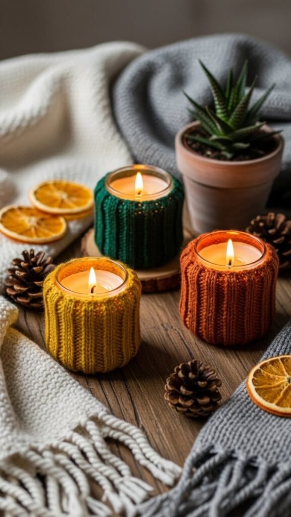 You’ll assemble candles with rustic pinecones, dried orange slices, twine, and optional cinnamon sticks. Arrange citrus garlands around jars, secure with ribbon, and include a short care card so recipients enjoy safe, stylish ambiance.