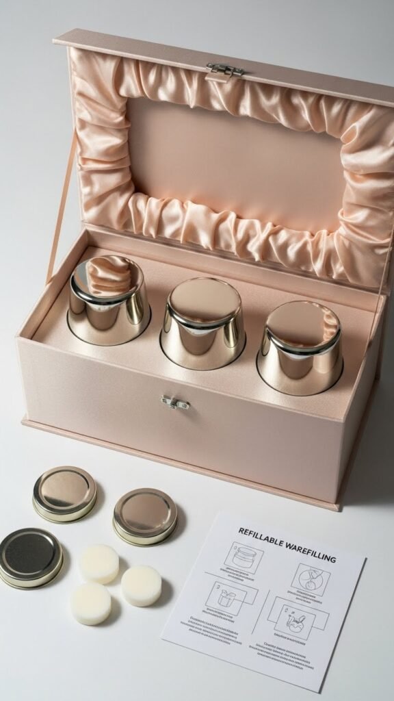 Include refillable wax pucks and simple metallic refilling instructions so recipients can customize scents.
