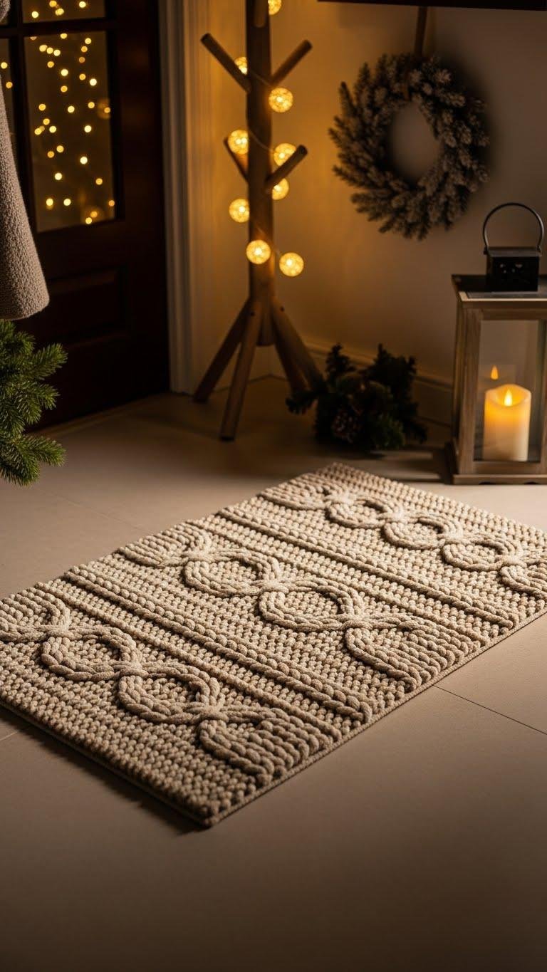 If you loved the bold peppermint swirl, you’ll appreciate how a cozy sweater knit design brings warm texture to your entryway without fuss.