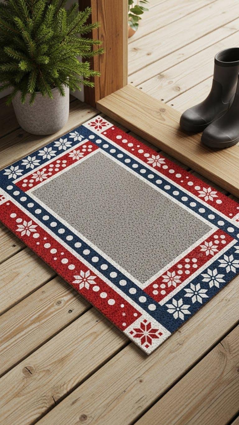 Bring a playful pop to your entry by layering a polka dot festive overlay on your doormat—simple circles in seasonal colors make a big visual impact with minimal effort.