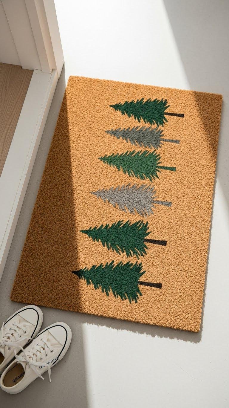 A slim row of minimalist pine silhouettes gives your doormat an instant, modern holiday vibe without feeling overdone.