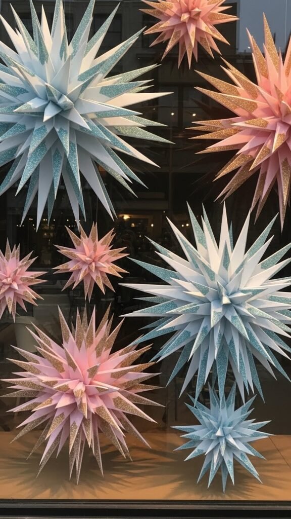 Cut crisp, radiant starbursts from foam board to give your window display an instant wow—think layered points, glittered edges, and a play of light that mimics icy sun flares on snow.