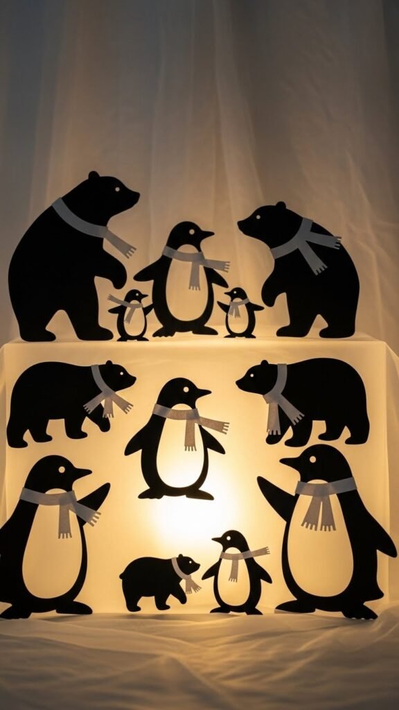 Bring cheerful Arctic charm to your window with playful penguin and polar bear cutouts you can layer and backlight for a lively silhouette display.