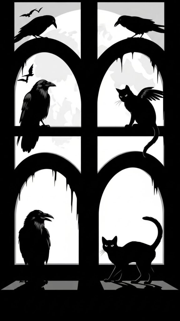 Spooky-Season Raven and Cat Silhouettes