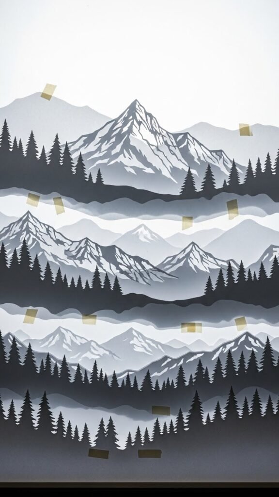 When you layer cutouts of snowy peaks, fir trees, and distant ridgelines at varying depths in the window, the scene will feel like a crisp, luminous winter panorama. You’ll cut and arrange multiple planes for silhouette layering, staggering heights and spacing. Backlit textures pop on vellum and paper; secure layers with removable tape. Step back, tweak distances, and let the vista breathe free.