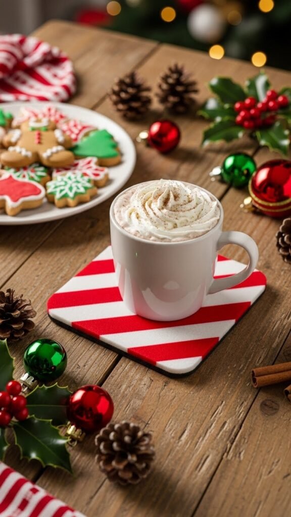 Switching from the minimalist two-tone look, you can crank up the cheer with a Festive Red and White Striped Coaster that reads holiday-ready without feeling syrupy. You’ll paint crisp festive stripes, echoing candy cane charm, then seal for spills and heat.