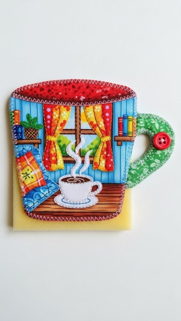 In a snap, you’ll turn a simple circle into a charming mug-shaped appliqué coaster that’s both cute and functional—perfect for gifting or brightening your own coffee corner.