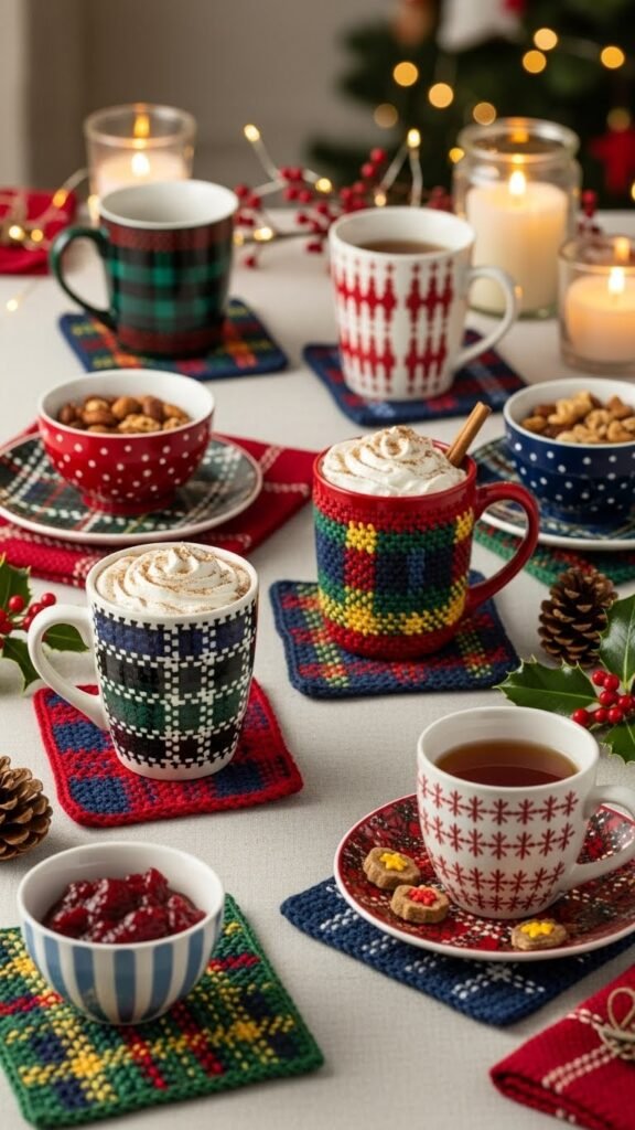 Give your holiday table a cozy, crafted touch with a plaid crochet coaster that’s both festive and durable. You’ll choose yarn to create a clear plaid texture and pick a bold tartan colorway that reflects your spirit. Crochet tight stitches for heat resistance, finish edges neatly, and mix sizes for mugs and bowls. It’s stylish, portable, and lets you celebrate freely.