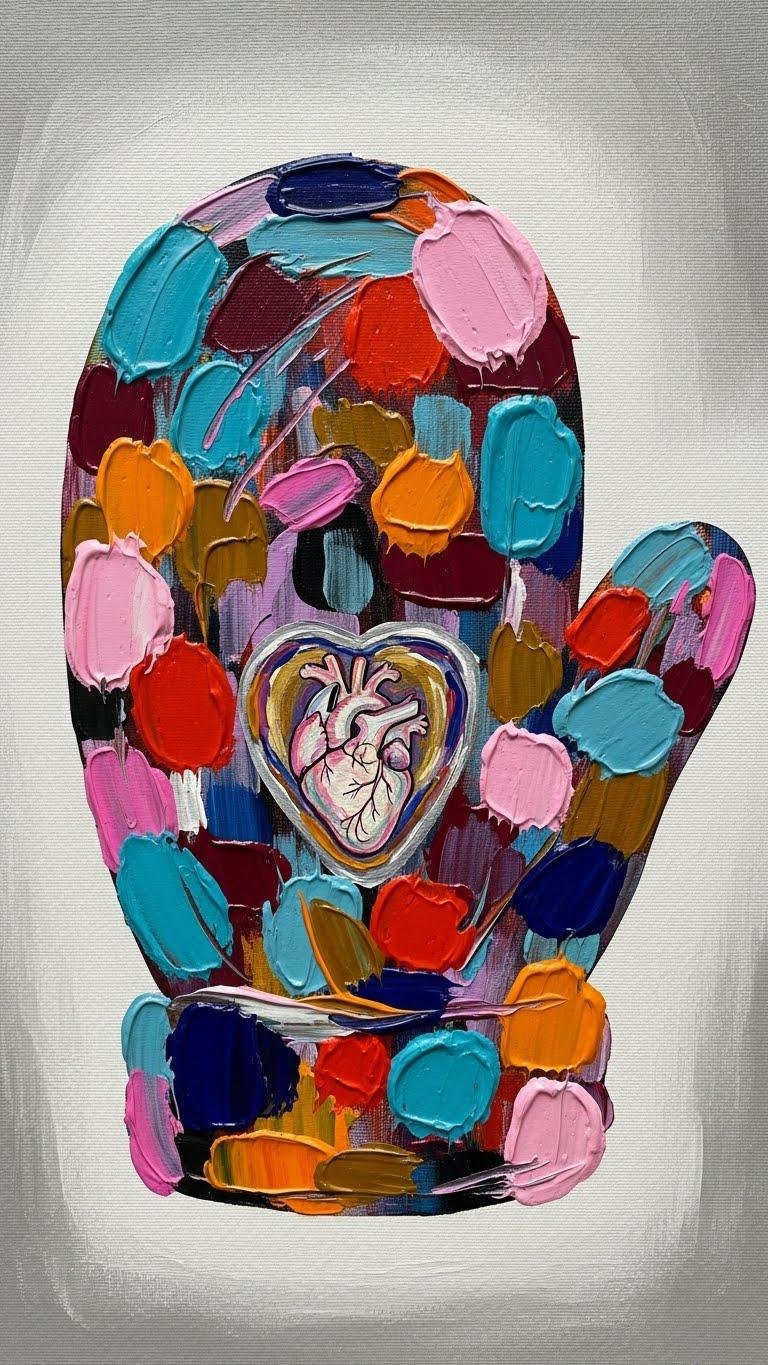 Heart-Holding Acrylic Mitten Painting