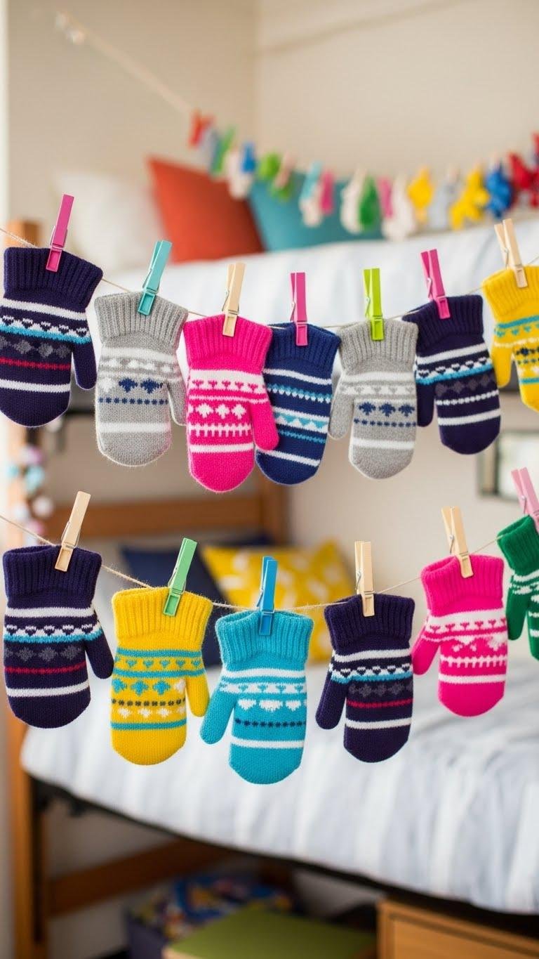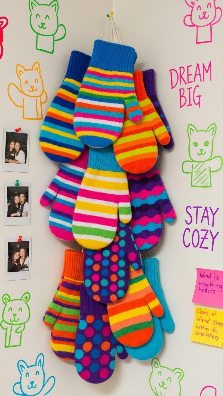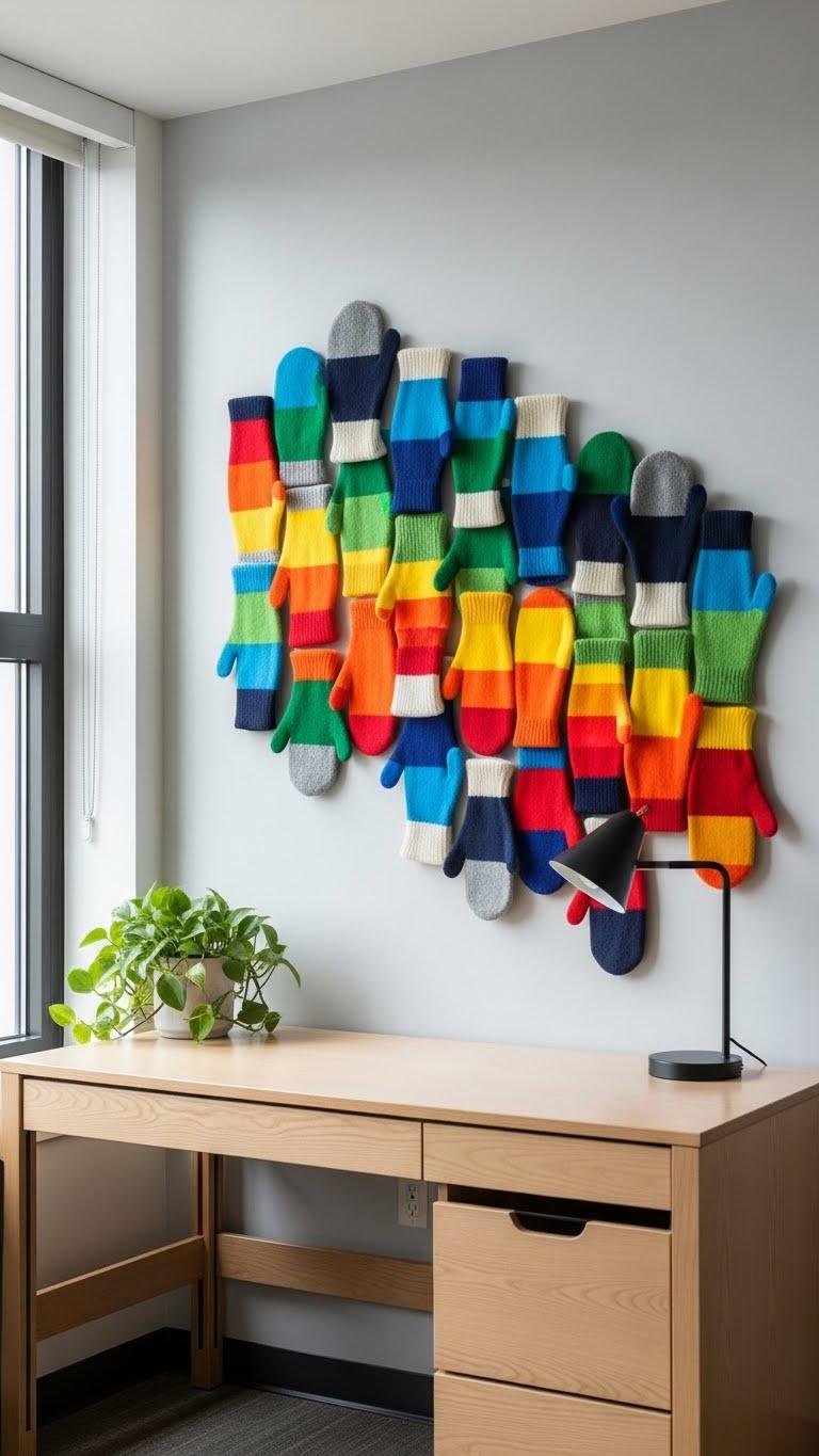 Hang them asymmetrically for a free-spirited vibe, mix metallics and matte hues, and let each mitten feel like a tiny, confident statement on your dorm wall.