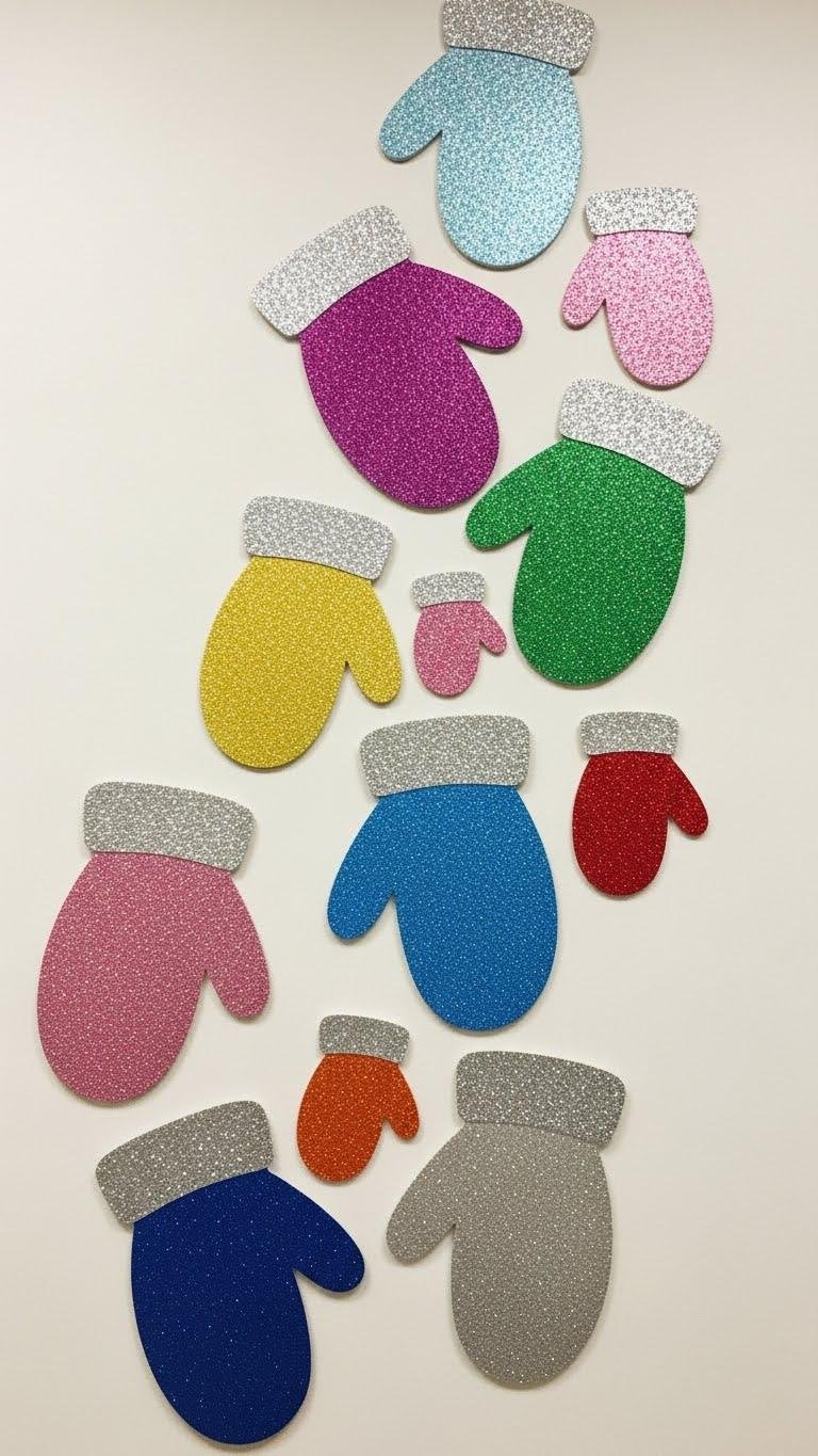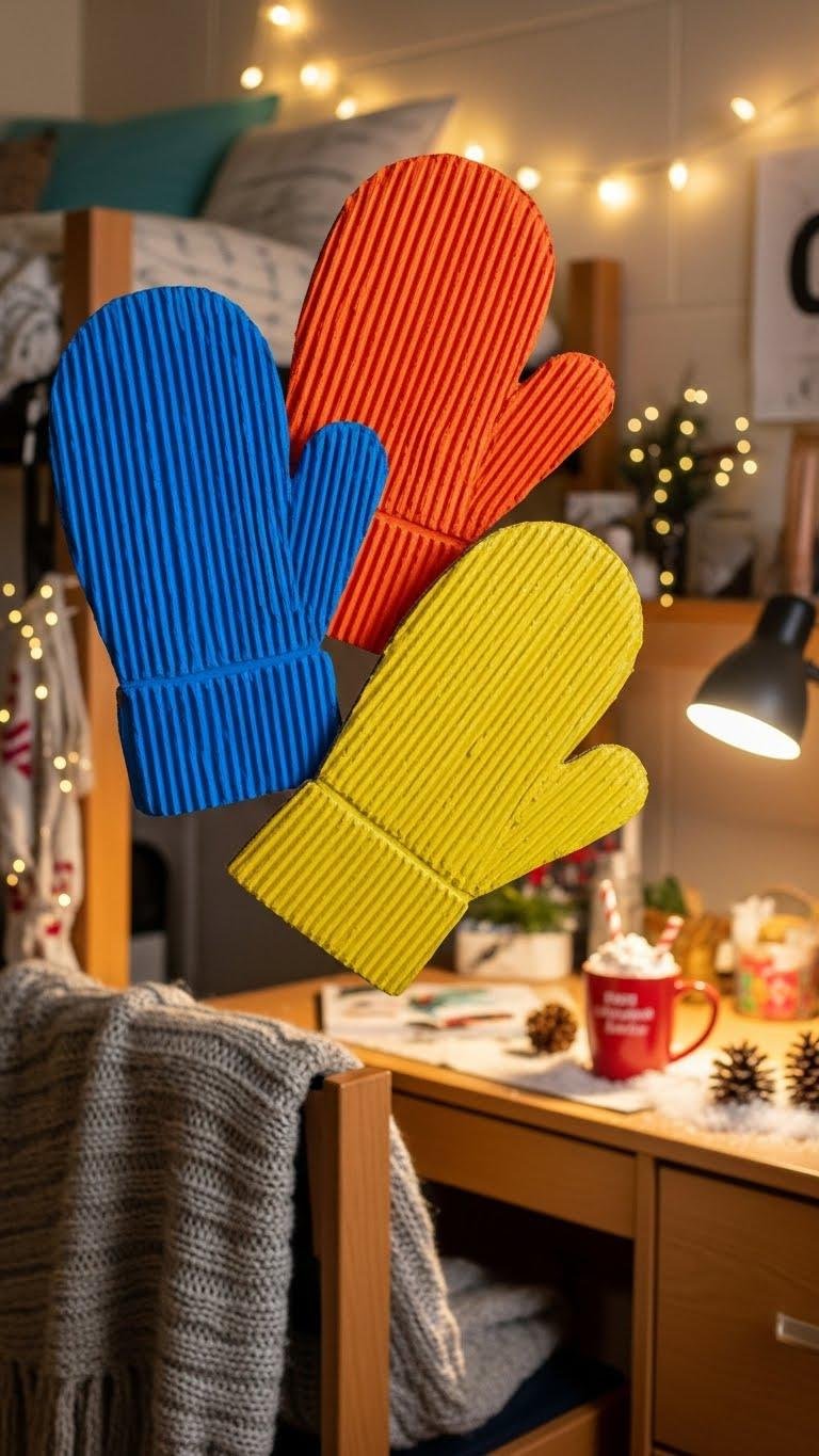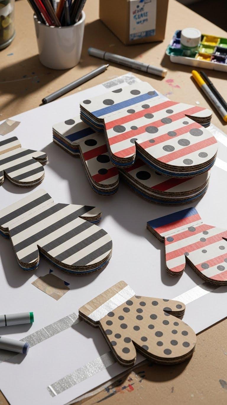 Often you’ll find corrugated cardboard hiding potential—cut three mitten shapes, paint them in bold complementary colors, and you’ve got an instant trio that feels modern and handmade.