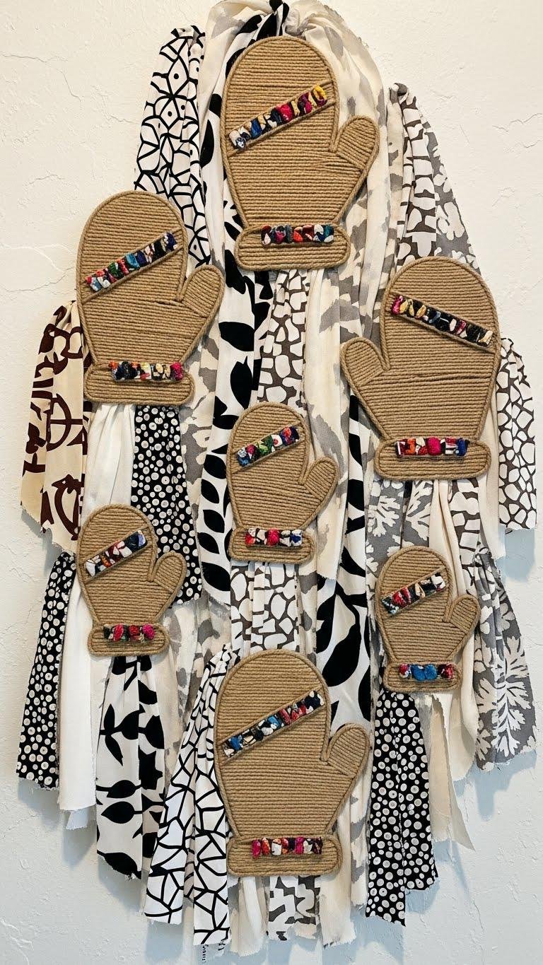 Textured Twine and Fabric Mitten Art