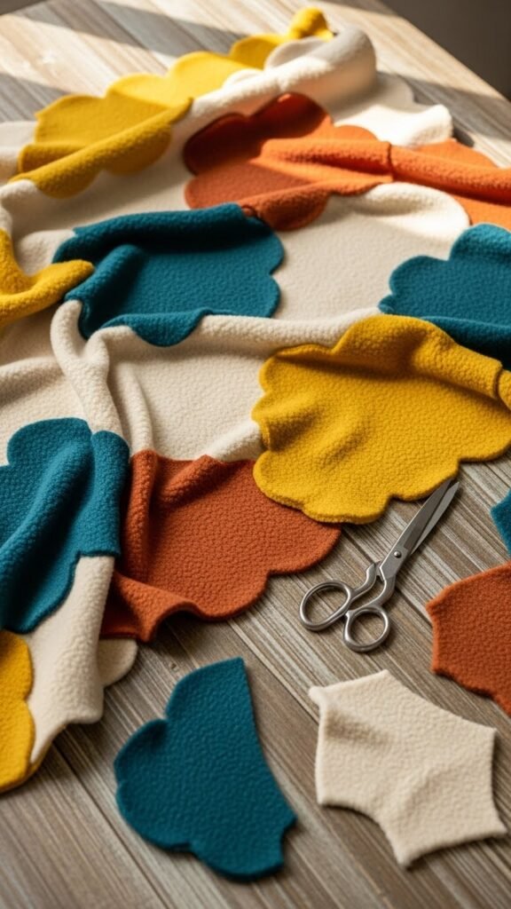 You’ll cut repeating scallops, knot fringe for a clean edge, and enjoy a minimalist, cottage-ready accessory. This technique is fast, forgiving, and freeing—pick bold or soft fleece, and let your hands shape comfort.