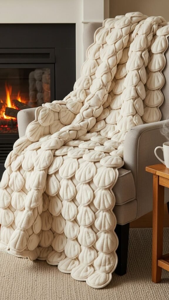 Pick up your hook and imagine an oversized throw in soft acrylic, its rows of shell stitches forming a scalloped border that catches the lamplight; this Classic Crochet Shell-Edge Acrylic Throw is warm, durable, and beginner-friendly, so you’ll finish a cozy blanket without fuss.
