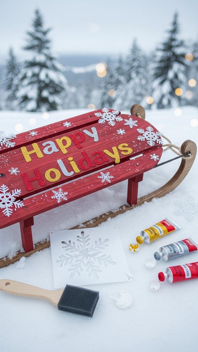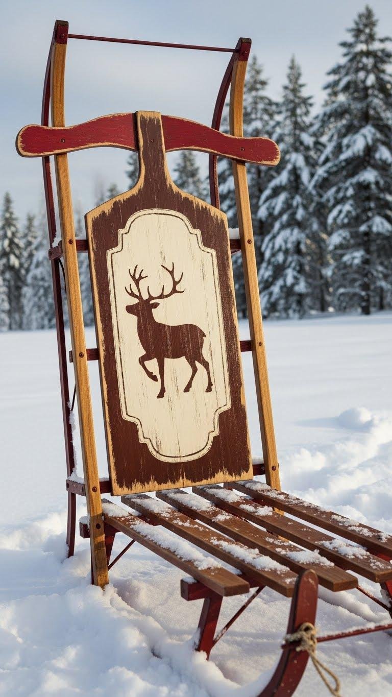 After you’ve fastened the bell and chain, give the sled a visual focal point by painting a reindeer silhouette panel along the backrest or sideboard. Grab a stencil for a crisp stenciled silhouette, sand edges lightly, then paint. Once dry, sand selectively for a lived-in, distressed finish. Seal with clear coat. You’ll create a bold, free-spirited look that’s durable and simple.