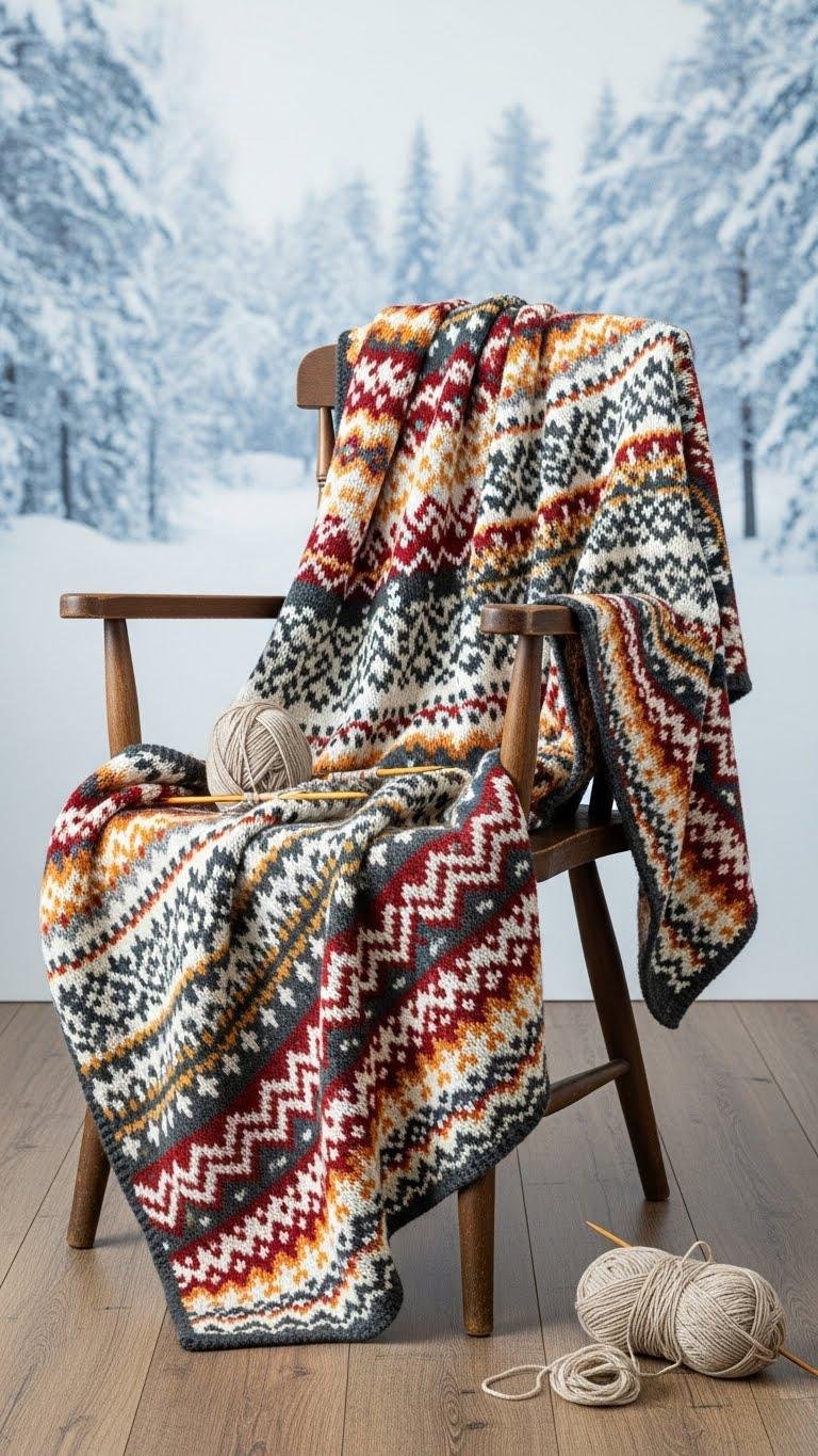 You’ll appreciate Scandinavian motifs that feel familiar yet freeing, and Fair Isle techniques that create durable warmth. Knit it in resilient wool, bring it to rides, and relish a portable, stylish blanket that moves with you.