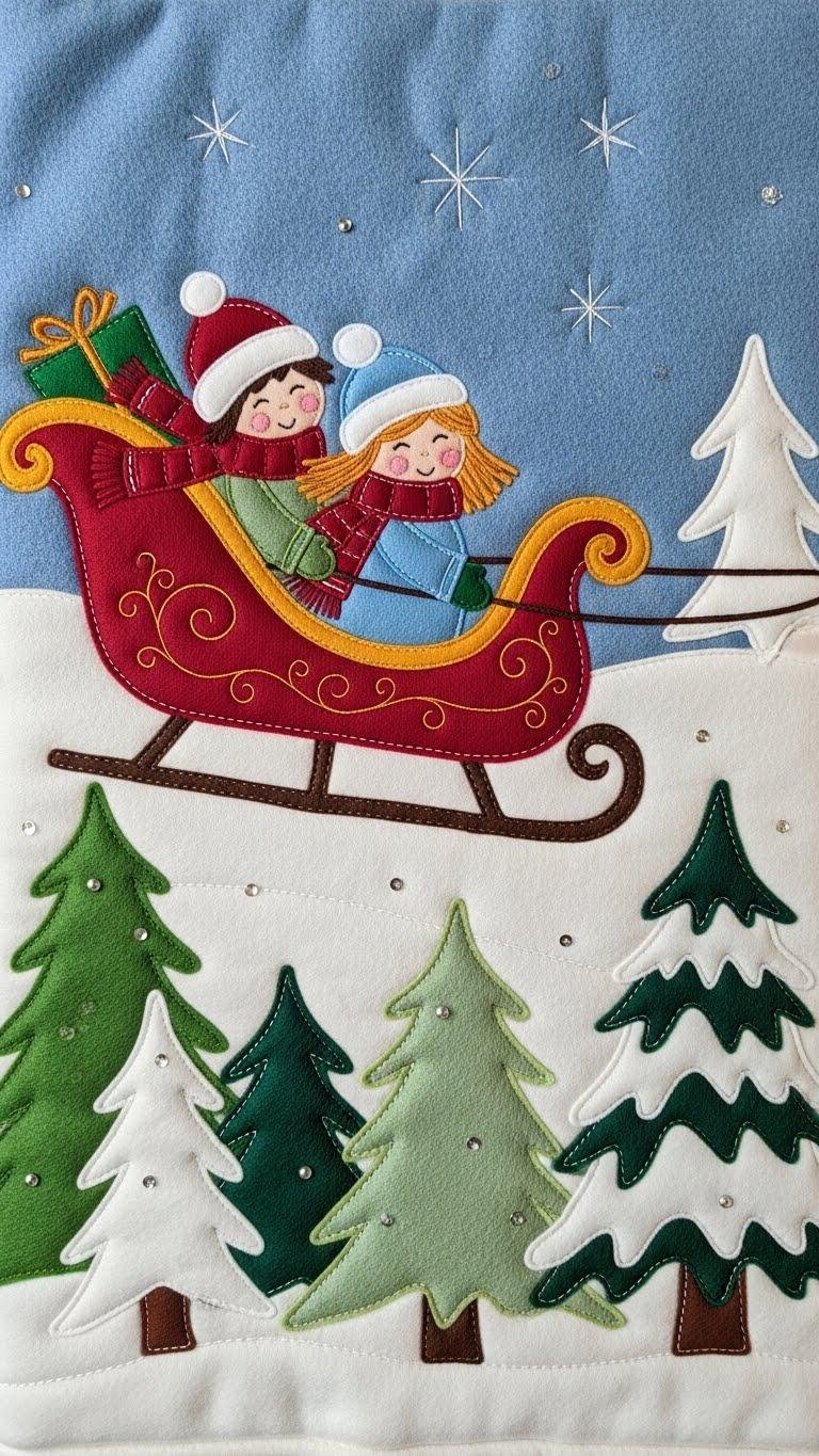 Picture stitching a charming sleigh ride scene onto a cozy blanket panel, turning a simple throw into a storybook centerpiece you’ll reach for all season. You’ll cut a sleigh applique from rich felt, position figures and trees on a winter panel, and stitch secure, visible seams. It’s practical, stylish, and liberating—crafting a personalized heirloom that invites outdoor nights and spontaneous adventures.