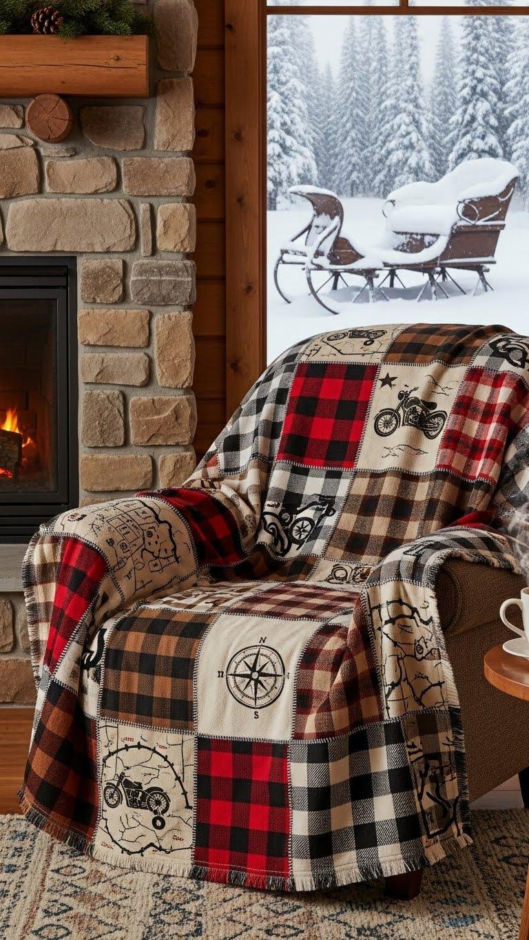 After you finish the sleigh panel, keep that cozy energy going with a Patchwork Flannel Comfort Throw that layers soft textures and homespun charm. You’ll assemble panels with varied flannel textures for warmth and visual interest, choosing prints that echo open roads. Stitch seams for patchwork durability, add a simple binding, and you’ll have a portable, ruggedly stylish throw that invites spontaneous adventures.