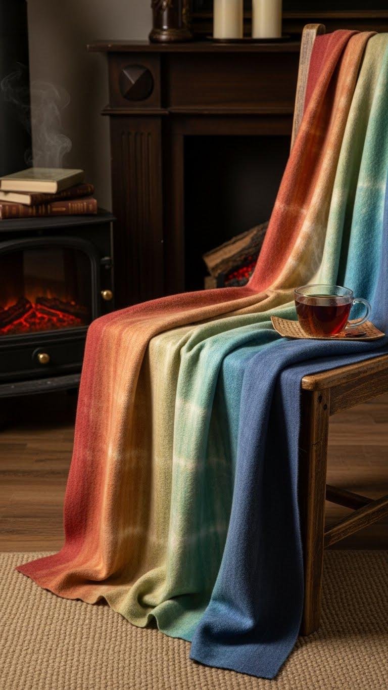 After enjoying the light, airy feel of a cotton lap blanket, try a hand-dyed ombre wool throw for evenings when you want more warmth and texture.