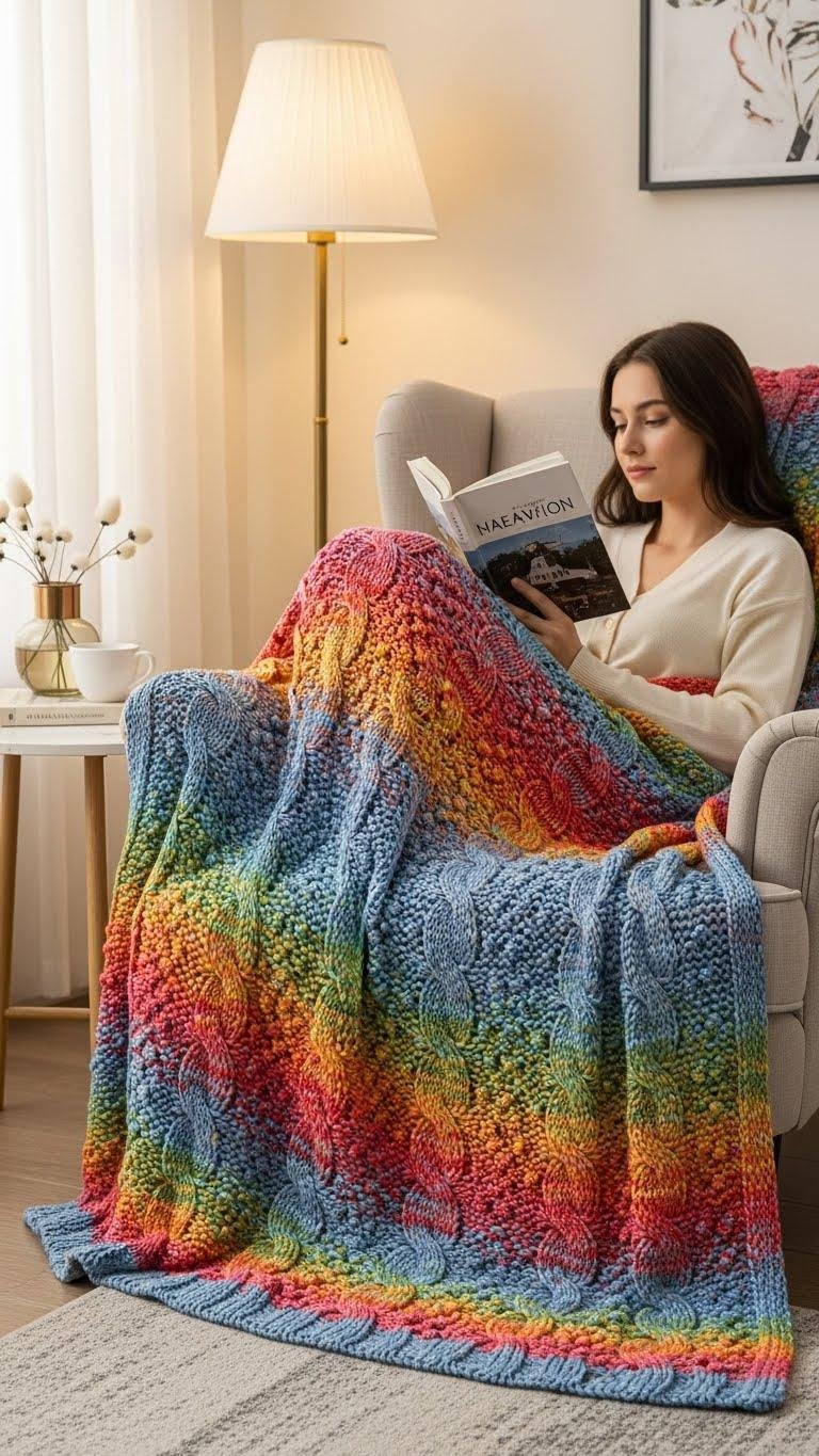 Curl up with a Cable and Bobble Stitch Cozy Throw that pairs sculpted texture with generous warmth, giving you a blanket that’s as decorative as it’s snuggly.