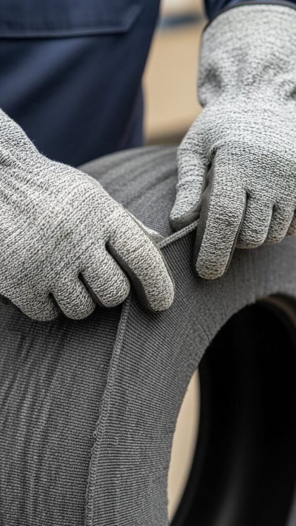 Gripping the edges with insulated, textured gloves, you’ll position the sock over the tire bead and stretch it evenly around the tread, using fingertip control to avoid trapping fabric or creating folds that reduce traction.