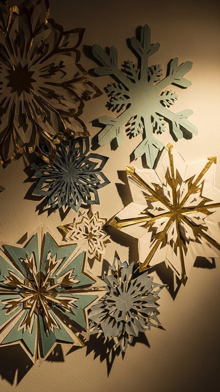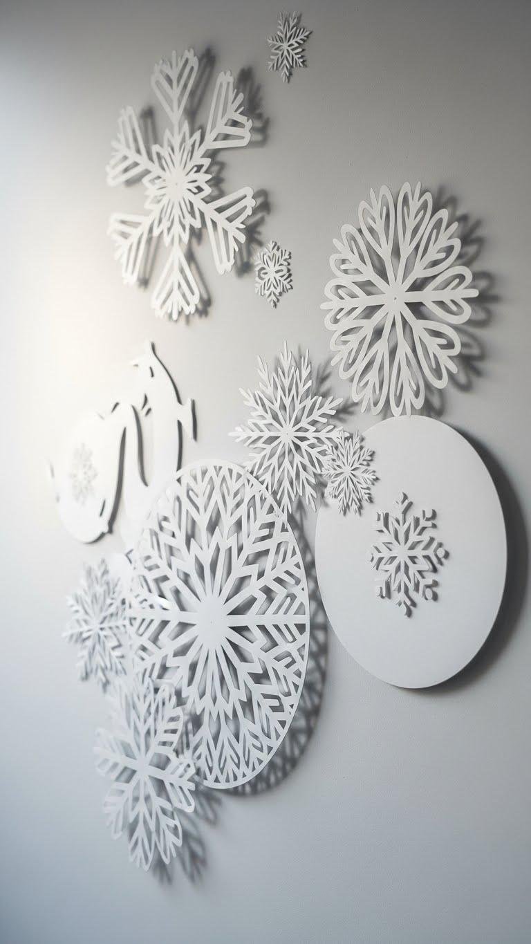 Layering thin white paper disks and delicate cutouts gives you a snowflake decal that reads like a quiet sculpture on your wall—clean, dimensional, and surprisingly modern.