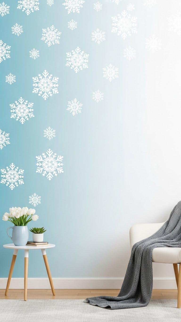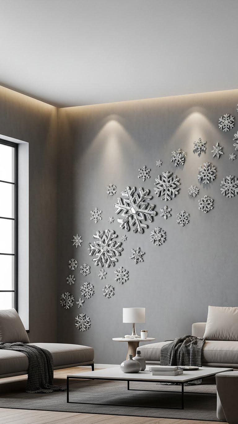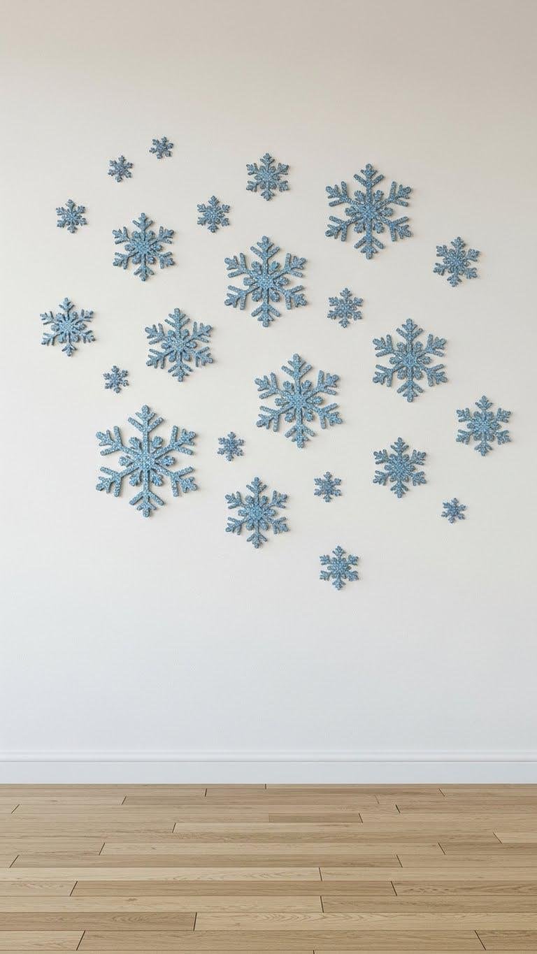 Across a wall like a gentle flurry, a mini snowflake confetti installation gives a room playful texture without overwhelming the space. You’ll place dozens of tiny decals in loose clusters, spacing them casually for an airy, free-spirited vibe.