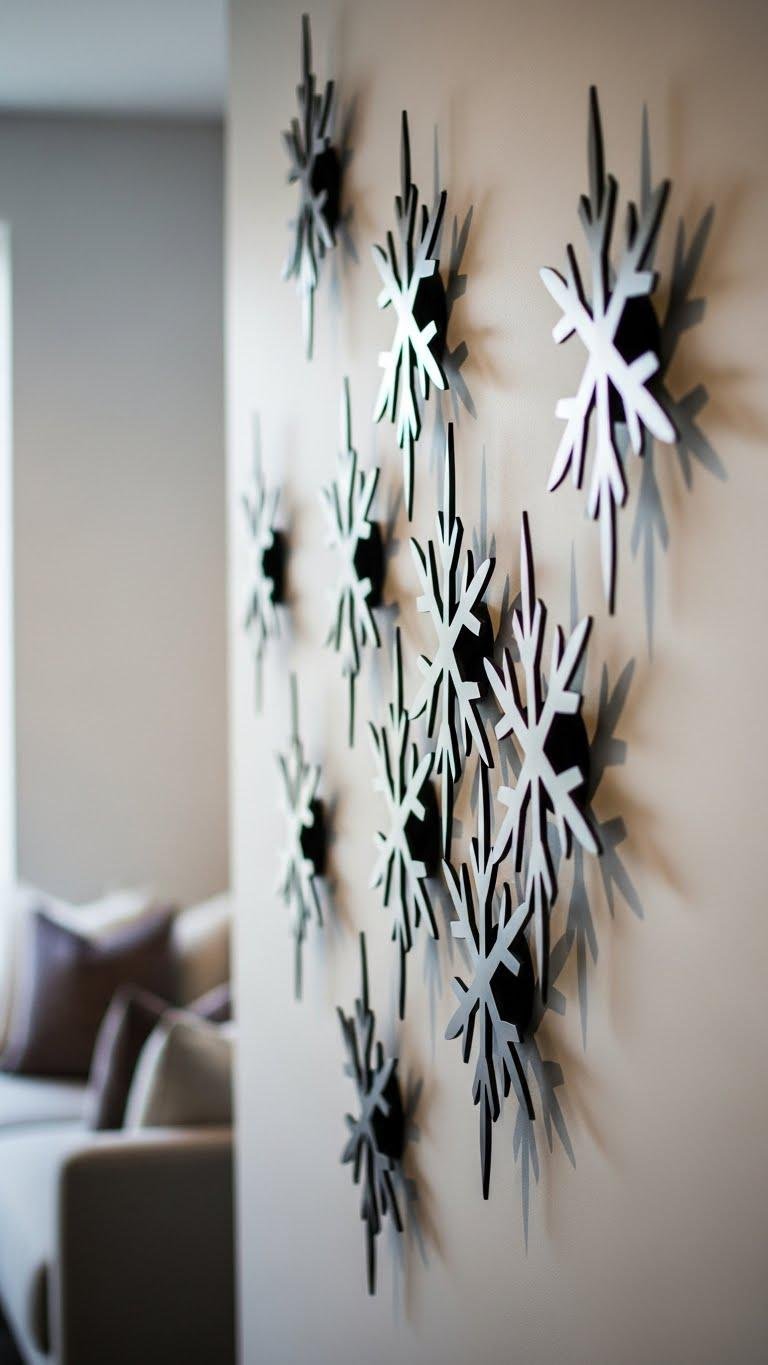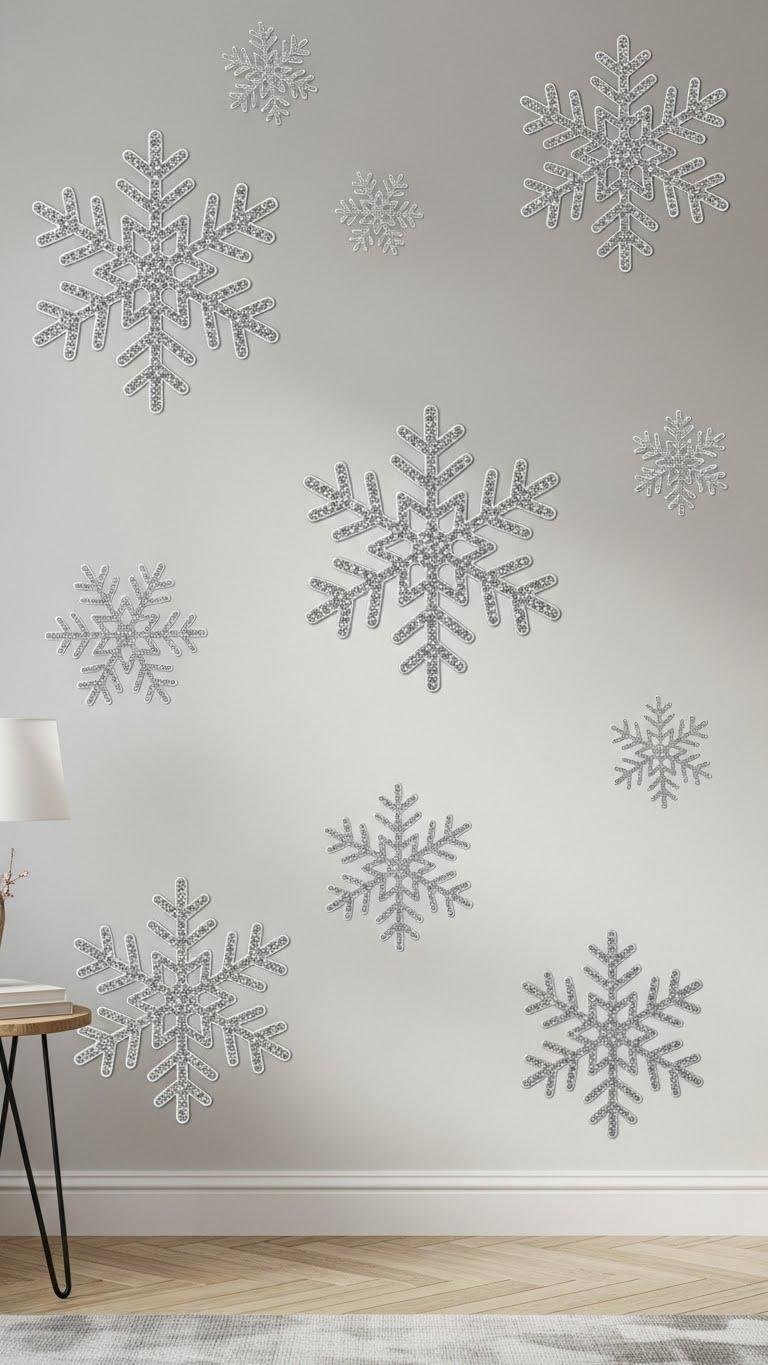 After working with delicate recycled snowflakes, you can make a bold focal point by scaling up: a large statement snowflake decal anchors a room, turning wall space into wearable art.