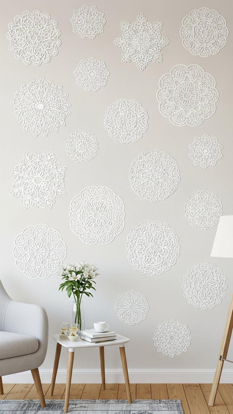 Think of lace-inspired snowflake decals as delicate architecture for your walls — they read like filigree at a distance and reveal intricate cutwork up close.
