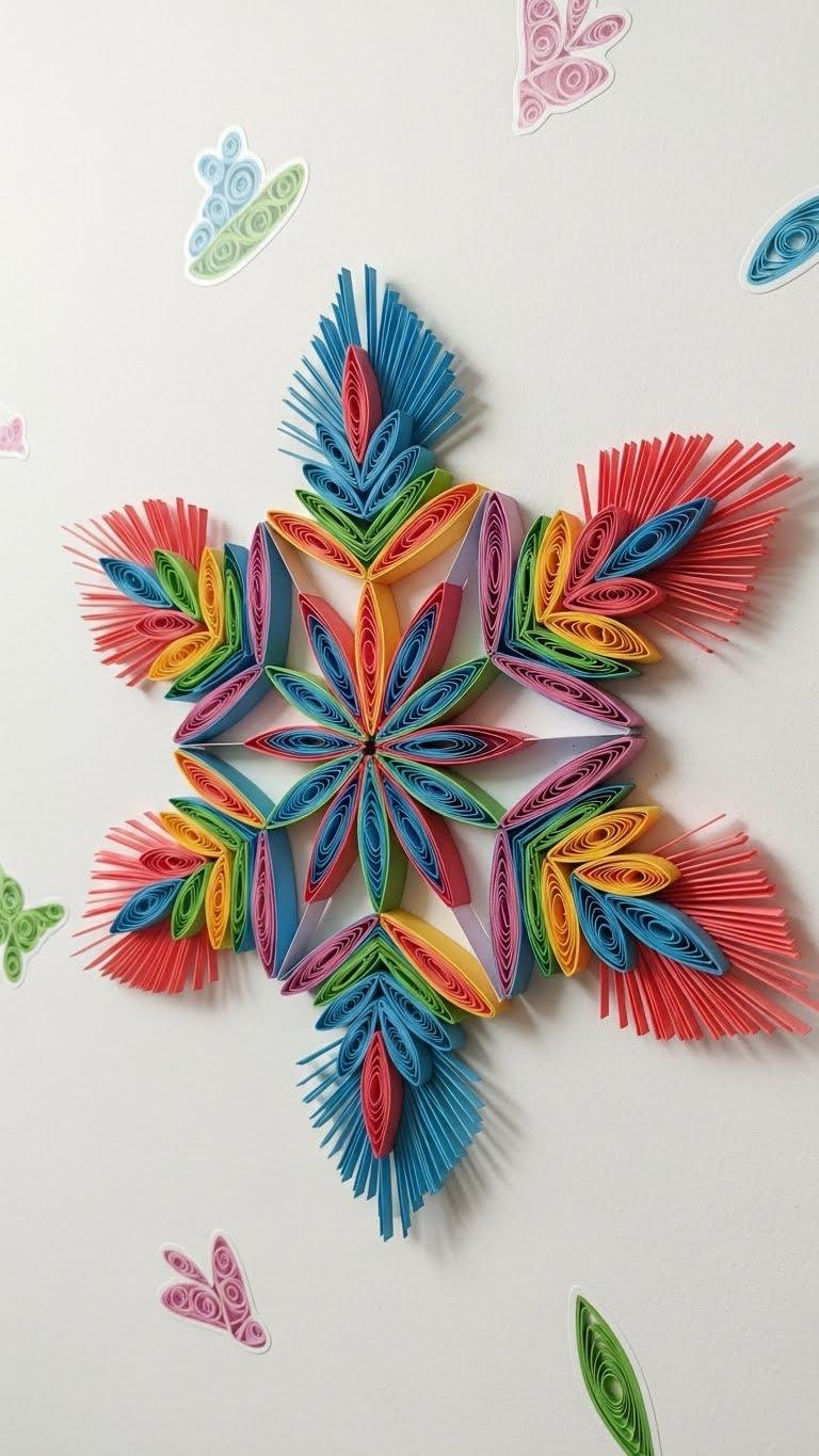 You’ll use paper quilling techniques to curl and bind segments, then add fringe layering at the tips for texture and movement.