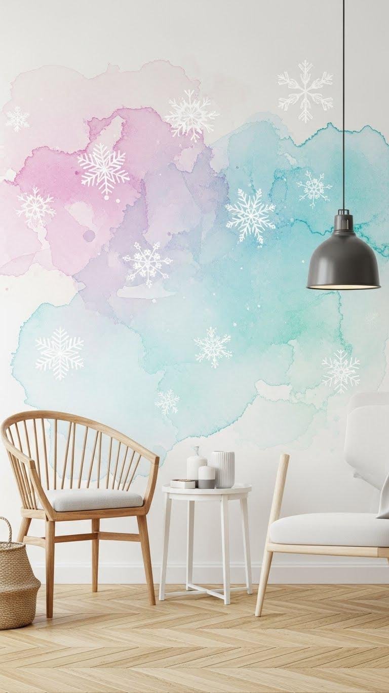 You’ll paint soft ombré fields, let diluted blooms blur edges, then place crisp decals over gentle gradients. The result feels airy, liberated, and modern — a room that breathes with wintry ease.