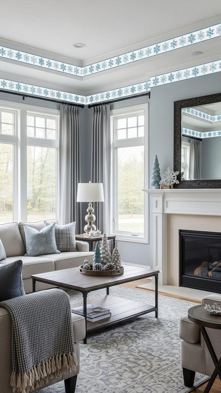 Along a chair rail or circling a ceiling cornice, snowflake border trim decals give your room a tailored, seasonal punctuation that feels deliberate rather than decorative for decoration’s sake. You’ll plan trim placement to emphasize sightlines, spacing motifs evenly, and choosing scale that honors proportions.