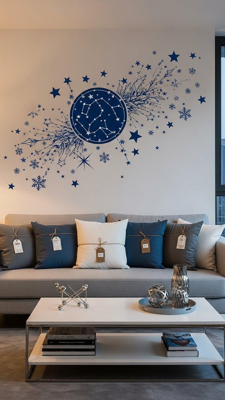 Pairing stars with snowflakes lifts the design from seasonal to chic—mix delicate starbursts with crystalline snow motifs to create a layered, celestial vignette that reads modern and curated. You’ll place a midnight constellation cluster above a sofa, vary scale for depth, and tie tiny tags with rustic twine on accent pieces. The result feels liberated, polished, and effortlessly adventurous.