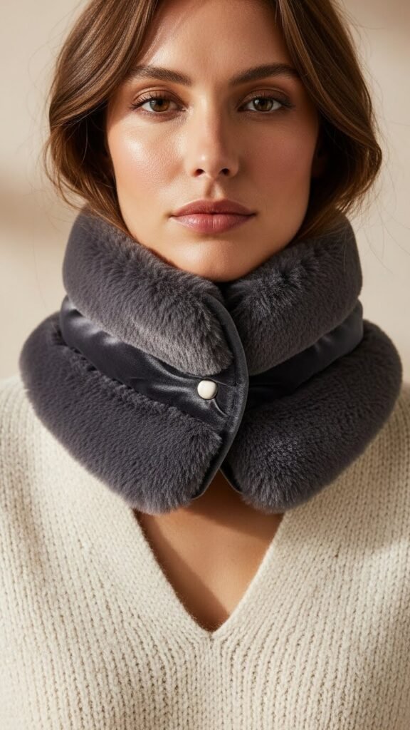 Think velvet and faux fur teamed up for a luxe short-cut: a velvet-trimmed faux fur collar instantly lifts any coat or sweater with a refined edge. You’ll choose velvet trimmed details and a subtle velvet edge to frame your face, add light collar padding for structure, and snap on freedom-friendly warmth.