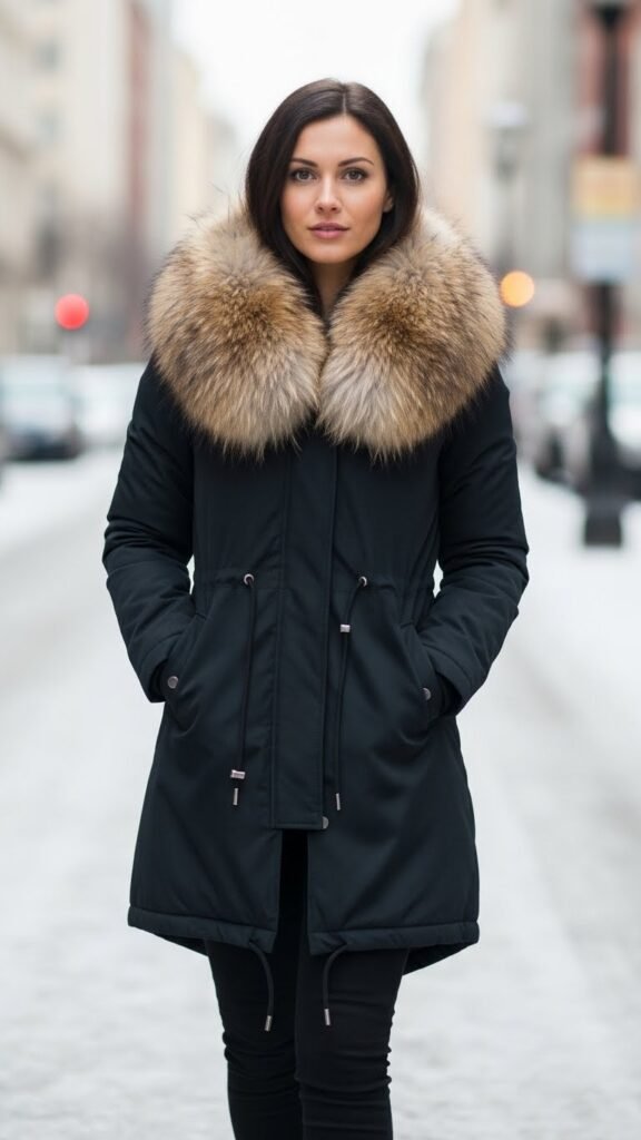 Often the oversized cozy fur collar turns a utilitarian parka into a statement of warmth and style, wrapping your neck in plush volume that’s equal parts shelter and swagger.
