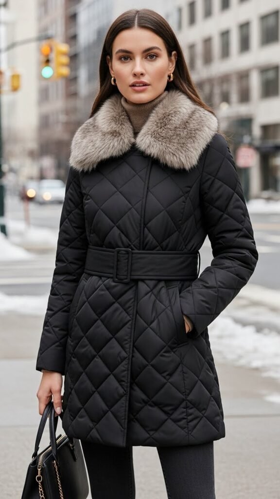 Quilted-Lined Faux Fur Collar for Extra Warmth