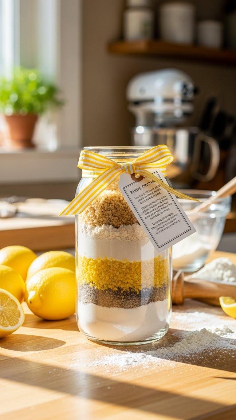 Brighten someone’s day with a Lemon Shortbread Cookie Mix in a Jar — a sunny, aromatic gift that layers pale, sandy sugar and flour with bright lemon zest crystals and buttery shortbread crumbs for a visually appealing and fragrant present.