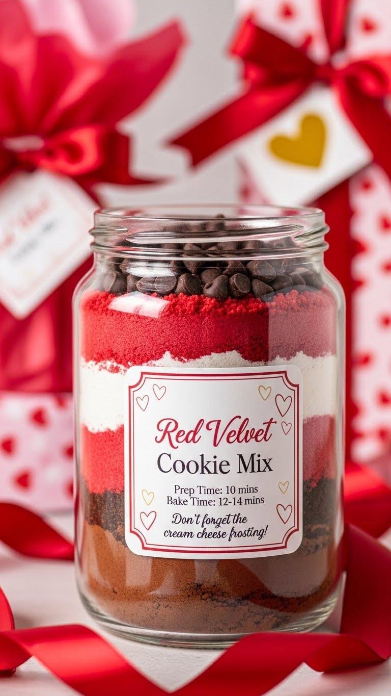 With a pop of crimson and the sweet tang of cocoa folded into every spoonful, this Red Velvet Cookie Mix in a Jar gives you a bakery-worthy treat with minimal fuss.