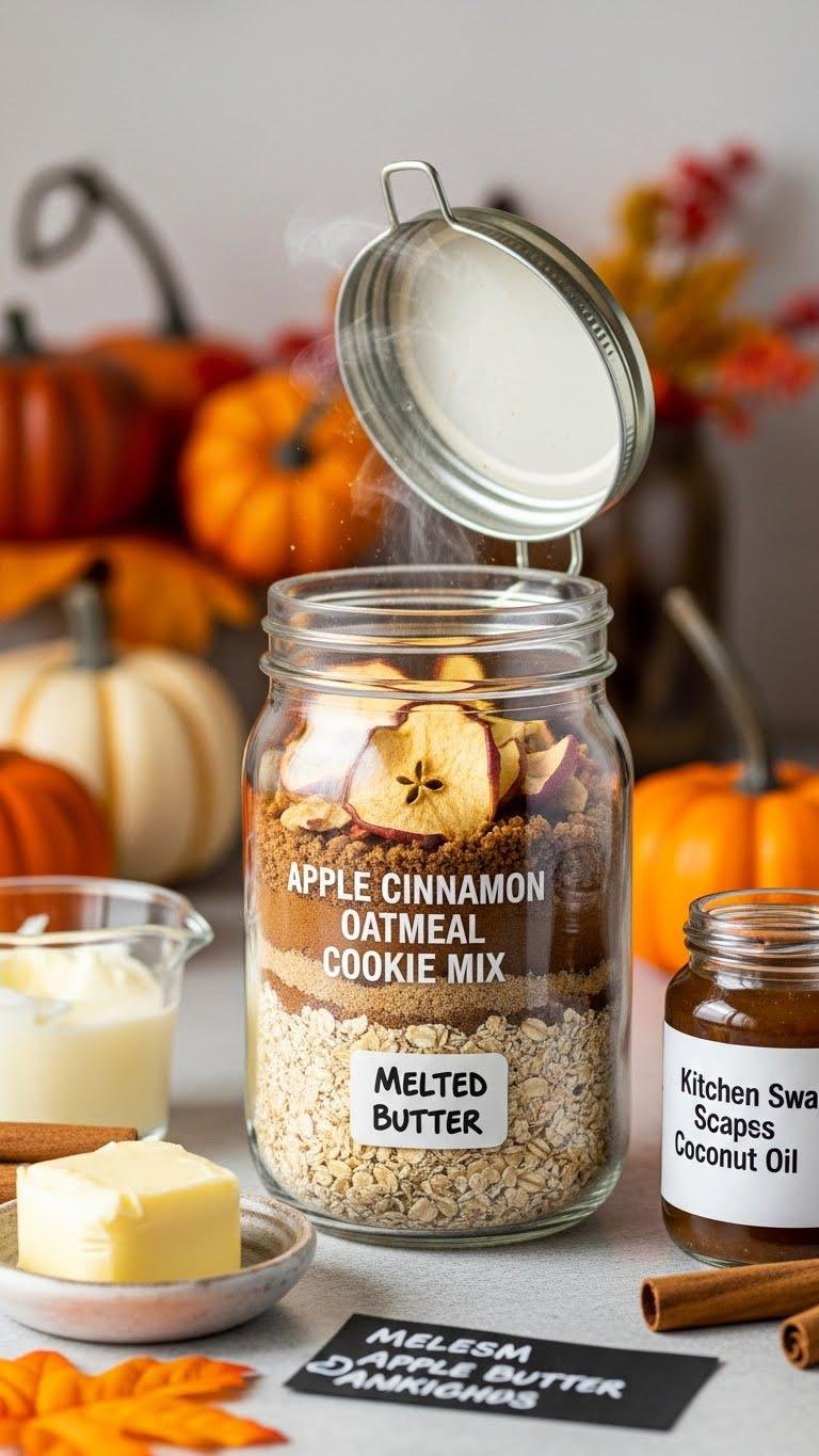 Stir up cozy baking vibes with an Apple Cinnamon Oatmeal Cookie Mix Jar that smells like autumn the moment you peel back the lid.
