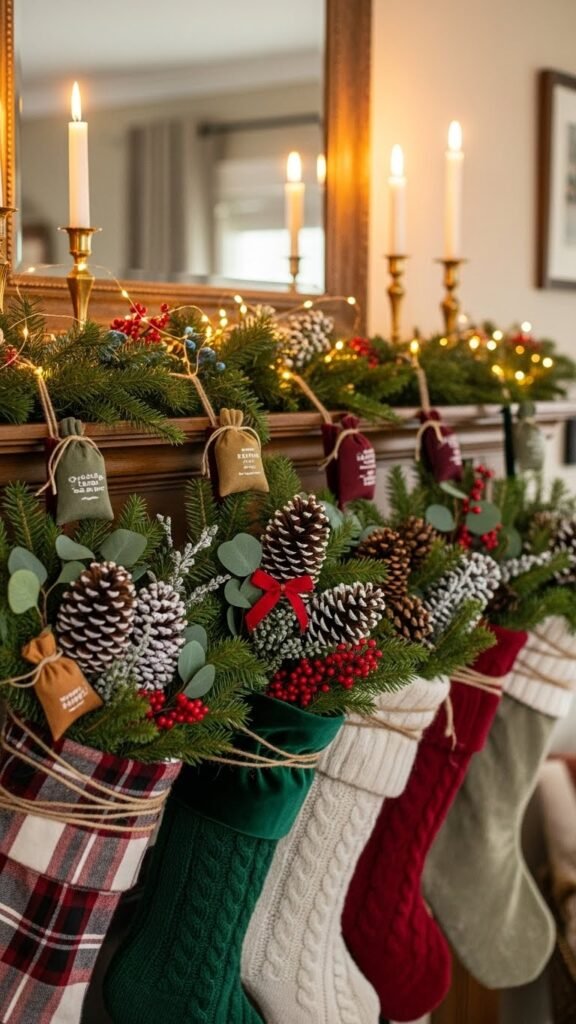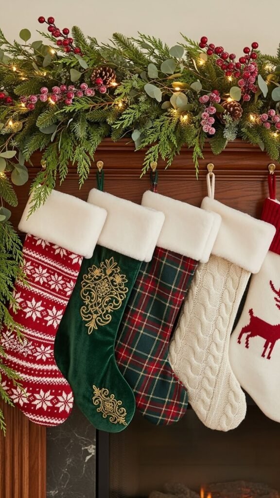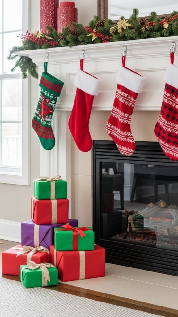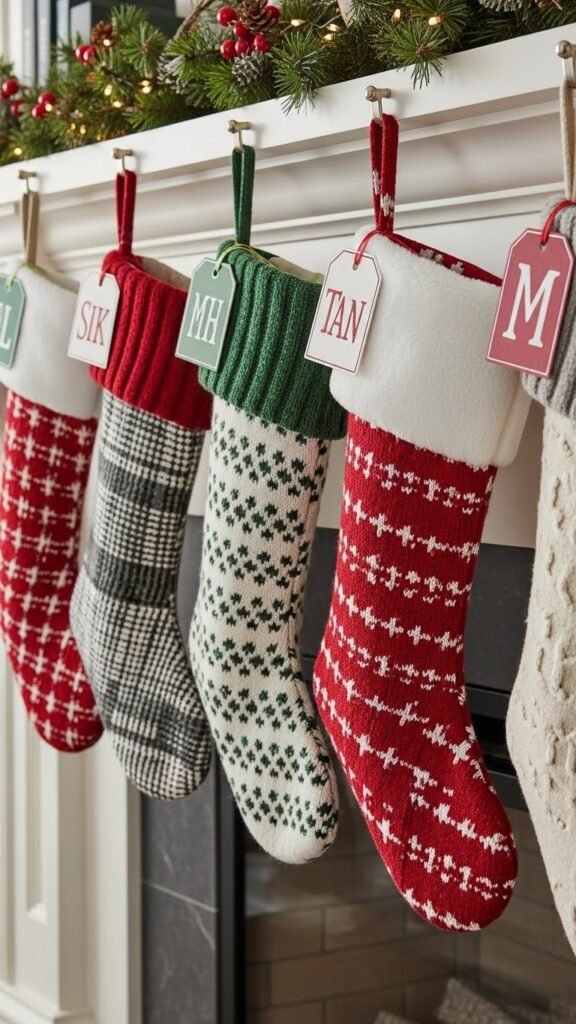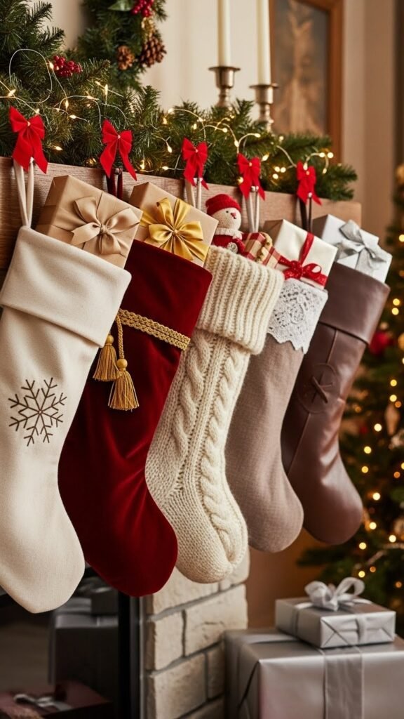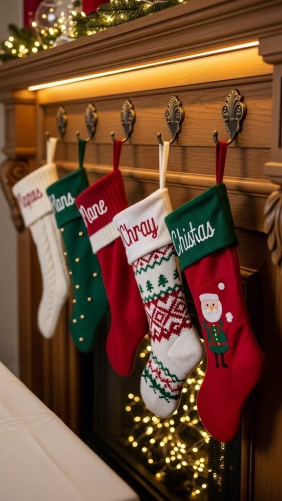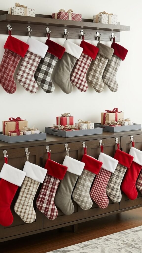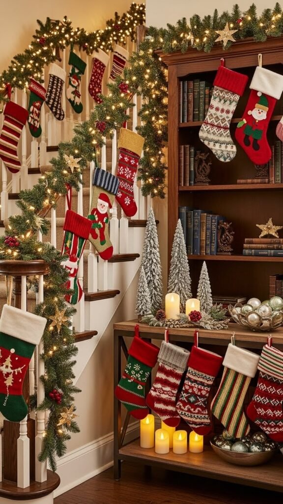Along staircases, bookshelves, or console tables, stocking displays can add vertical interest and seasonal function while staying tidy—you’ll want a plan for spacing, attachment, and scale before you start.