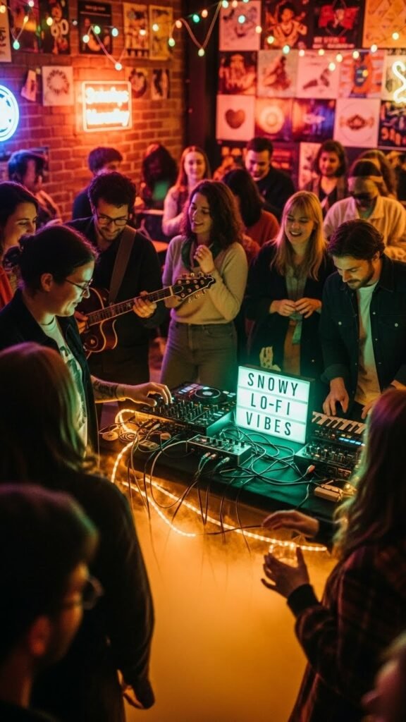 You’ll sprinkle minty synths and snowy lo fi into sets, choosing crisp hooks and relaxed grooves that let people roam the room, connect, and breathe without killing momentum.