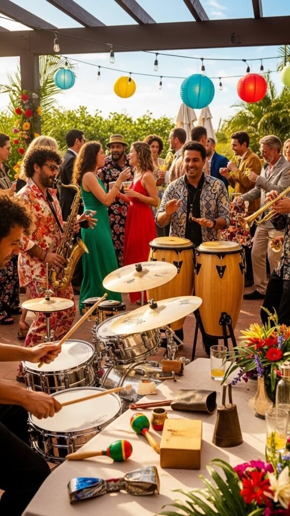 You’ll blend Caribbean clave patterns with festive horns, sprinkle Samba swing for upbeat peaks, and choose tracks that invite movement without dominating conversation.