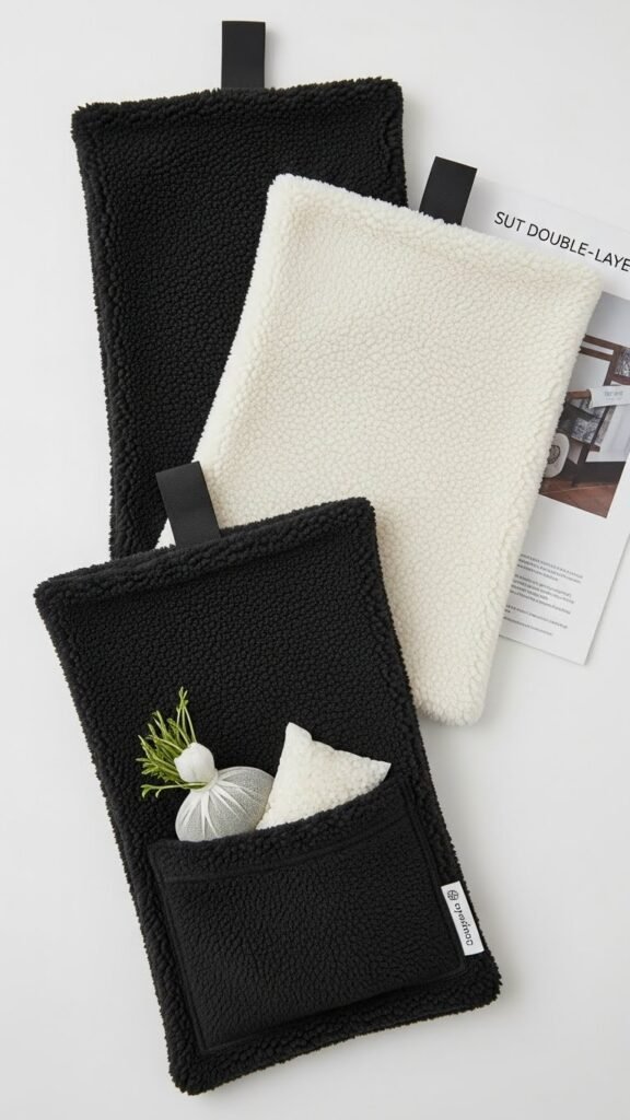 You’ll cut double layer fleece, stitch a slim insert, and add a reversible pocket for herbal sachets or rice.