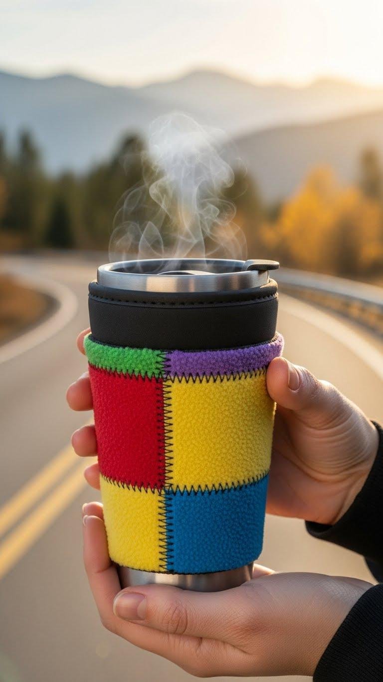 After you’ve felt how a slim glove insert targets fingers and wrists, think about warming from the other direction: your travel mug. Slip on a simple insulated cozy made from scrap fleece or neoprene, stitch a snug cuff, and you’ve got portable warmth.